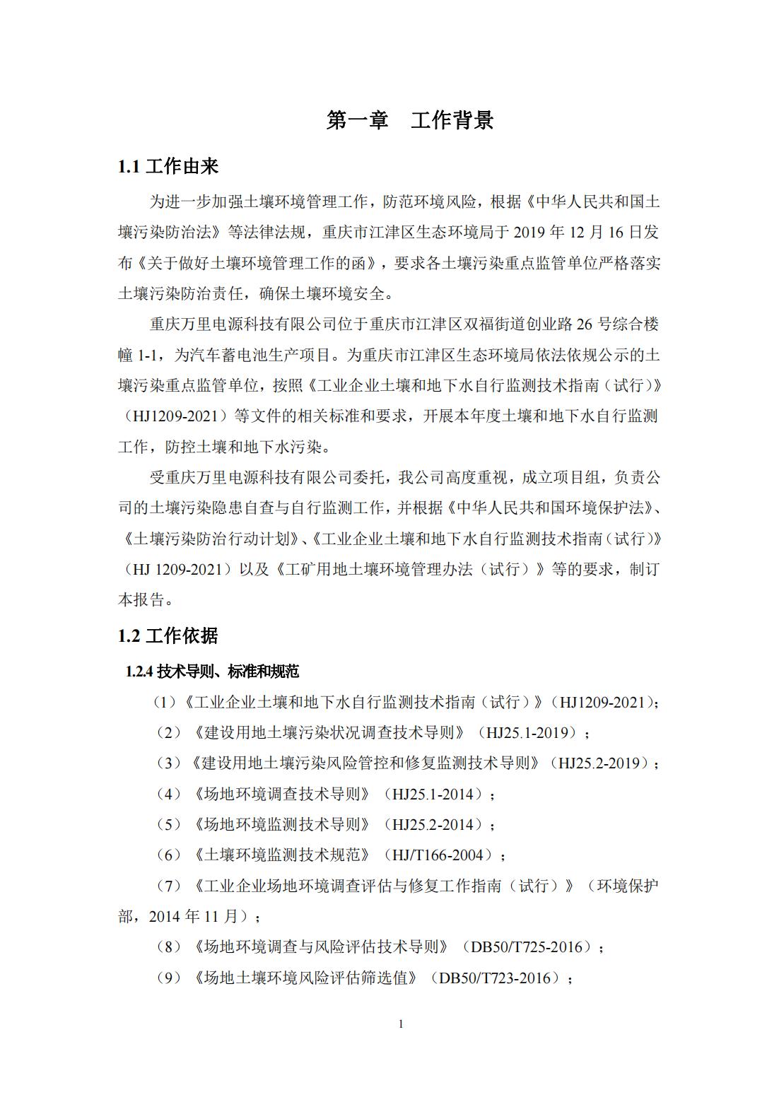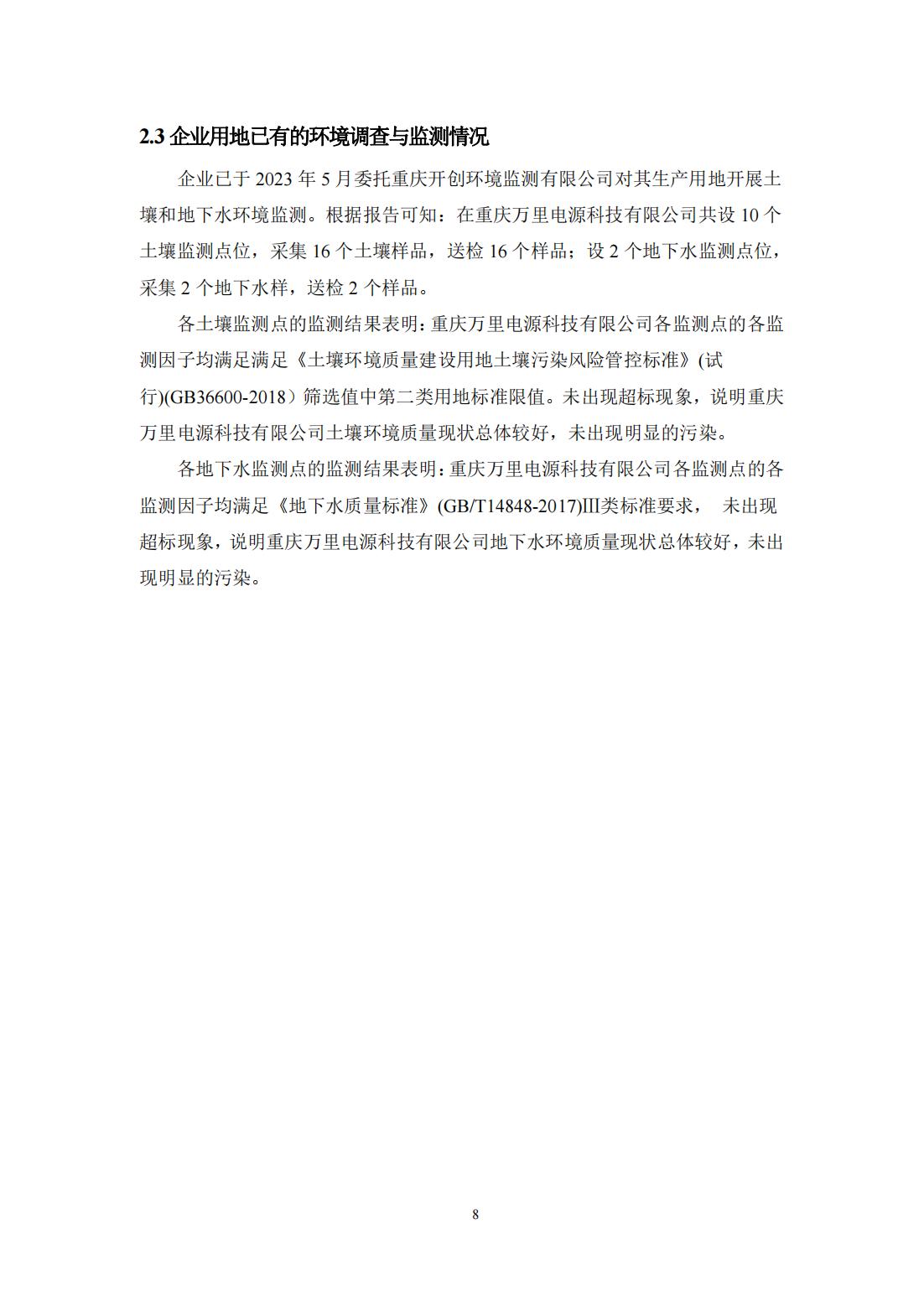 重慶萬里電源科技有限公司2023土壤和地下水自行監(jiān)測報告